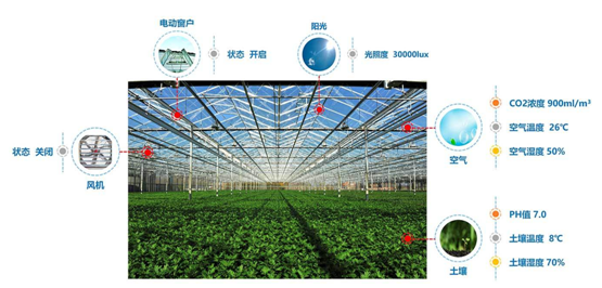 除此之外,CO2農(nóng)業(yè)生產(chǎn)也密切相關(guān),隨著科技發(fā)展,農(nóng)業(yè)大棚、植物工廠、蘑菇培育房等種植技術(shù)也隨之產(chǎn)生。這一類的技術(shù)主要是用來(lái)給植物提供適宜其生長(zhǎng)的環(huán)境條件,以達(dá)到在原本不適宜的季節(jié)和地理?xiàng)l件下仍能栽培的目的。種植中有很多因素需要加以控制,如溫度、濕度、CO2的濃度、光照度等。只有將這些關(guān)系到植物生長(zhǎng)的因素控制在合適的范圍內(nèi),才能保證種植物正常生長(zhǎng)并獲得較好的成效。