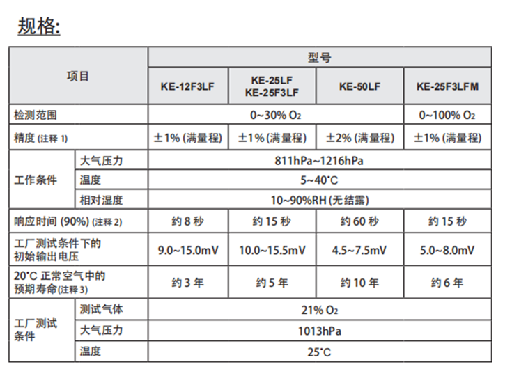 KE-LF系列無鉛電池式氧氣傳感器