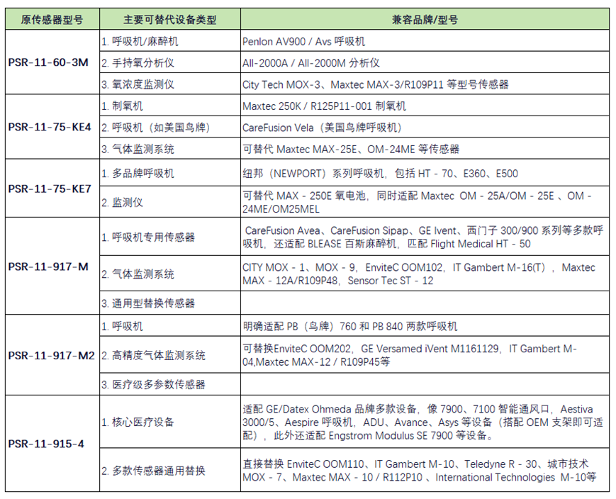 這幾款美國(guó)AII品牌醫(yī)療用氧氣傳感器的替換方案如下: